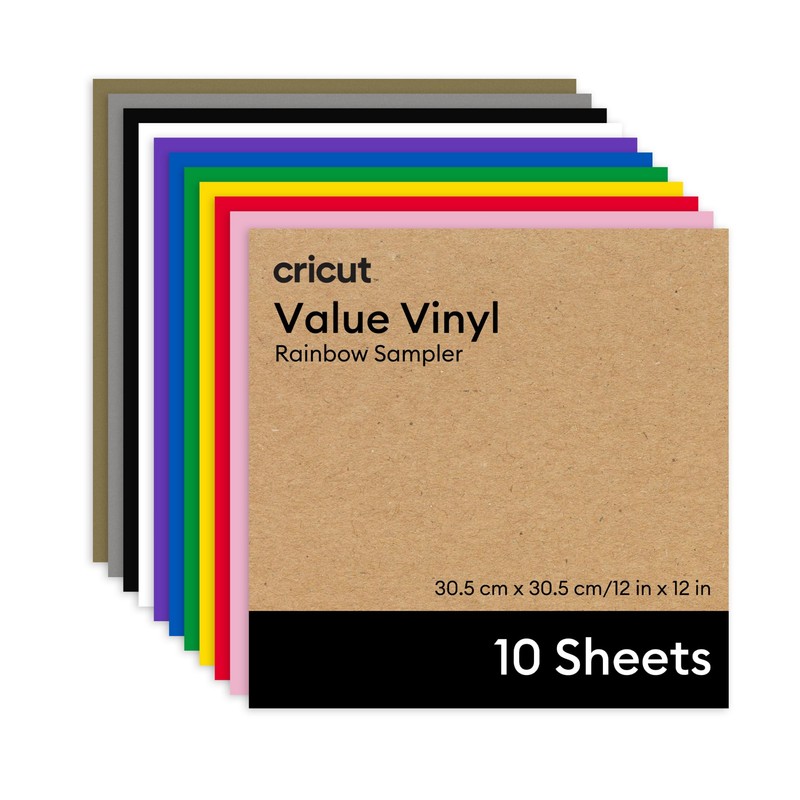 Cricut Value Permanent Vinyl - 10ft Rainbow Sampler, 12in x 12in Sheets (10 Count)