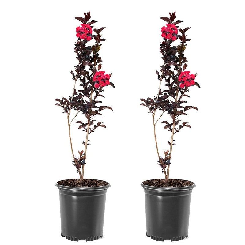 Crimson Red Black Diamond Crape Myrtle, 1 gal. Nursery Pot, 12-18 in Tree Height, 2 Trees