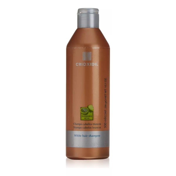 El Champú Cabellos Blancos CRIOXIDIL es el complemento específico ideal para neutralizar el reflejo dorado – amarillento de los cabellos canosos. Champú Cabellos Blancos CRIOXIDIL lava suavemente y aporta color gracias a su combinación de colorantes que lo hacen ideal para el cuidado continuado de colores donde se necesite neutralización del amarillo. Consigue un tacto y brillo del cabello muy naturales que ayuda a realzar la tonalidad conseguida.