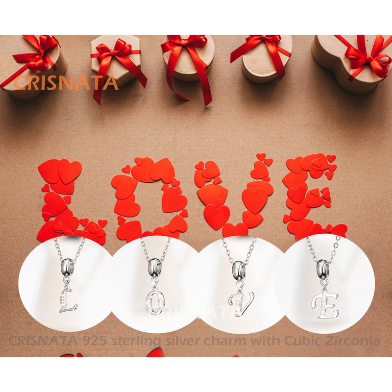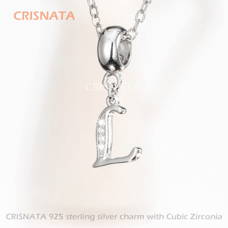 CRISNATA 26 Letter Pendant Charms, Polished 925 Sterling Silver Complete Initial A-Z Dangling CZ Stone Alphabet Beads, Fits European Bracelet Necklace, Sterling Silver Cubic Zirconia, Cubic Zirconia