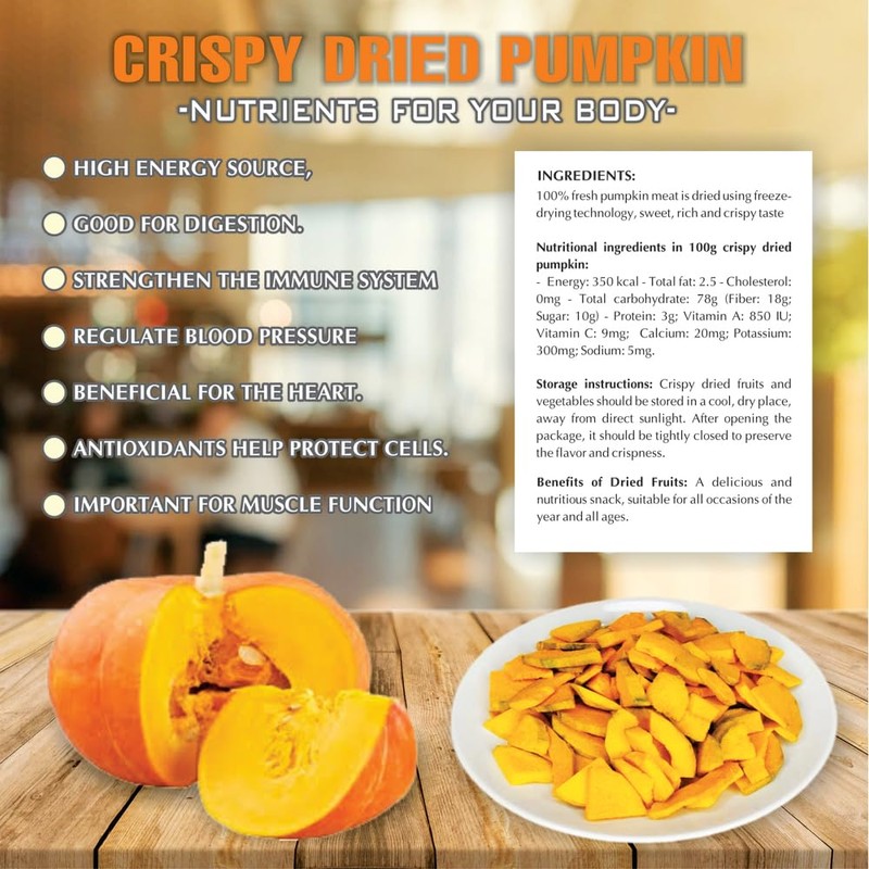 - ๐ฑ Crispy pumpkin: The product is safe to use as a daily food, a nutritious snack, to enjoy delicious dishes and decorate dishes beautifully.