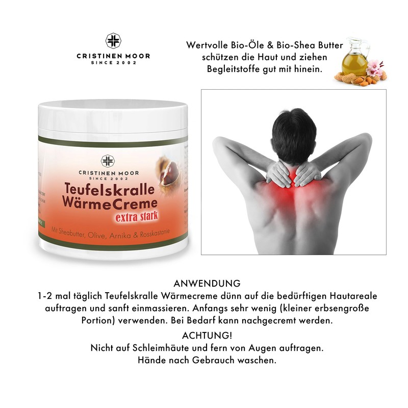 CristinenMoor Teufelskralle WärmeCreme extra stark mit Arnika 500 ml I Wärmesalbe für Nacken und Lendenbereich I bei Verspannungen der Muskulatur und Rücken