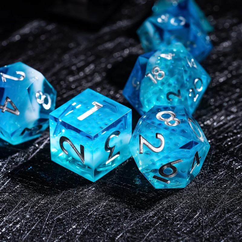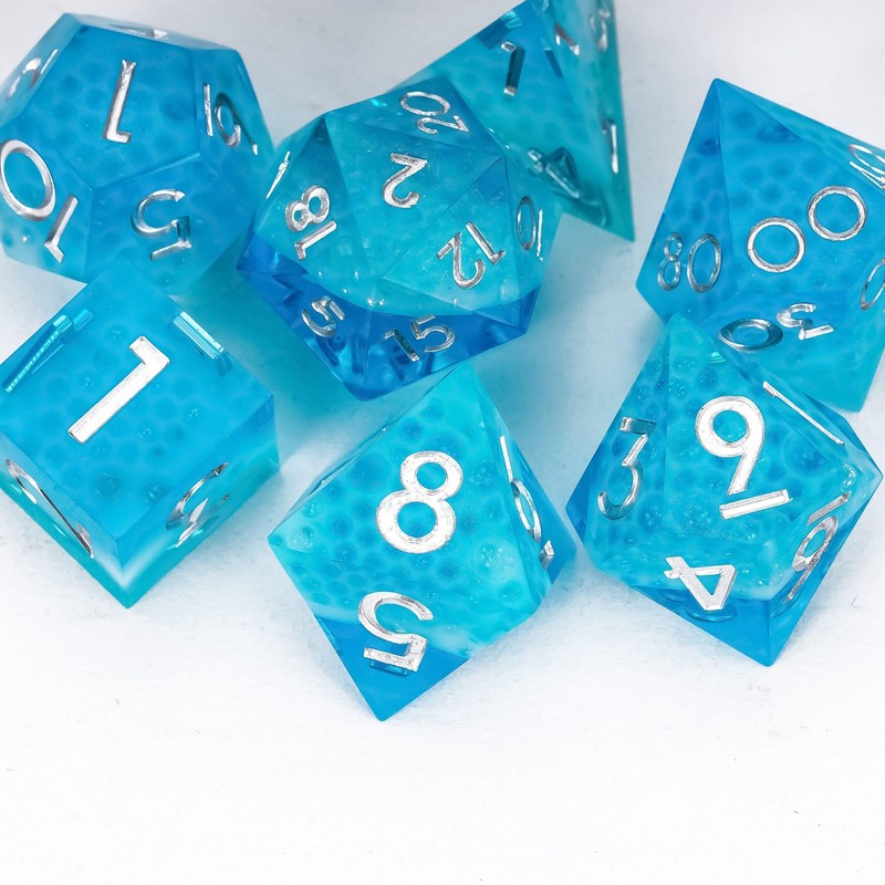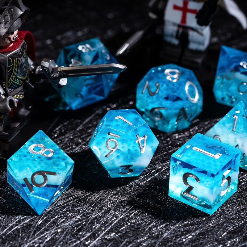 CRITALLIC 7PCS Cocktail DND Dice Set, Handmade Sharp Edge Dice Set D&D RPG Polyhedral Dice for Dungeons & Dragons TTRPG Roleplaying Game Shadowrun Pathfinder MTG with Gift Box(Blue Green)