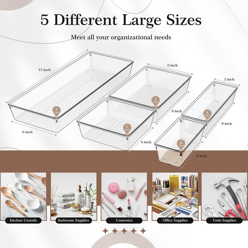 - Premium PET Material: Made from premium PET plastic, these durable drawer organizers are lightweight yet shatter-resistant. The food-grade material ensures safety, making them ideal even for refrigerator storage