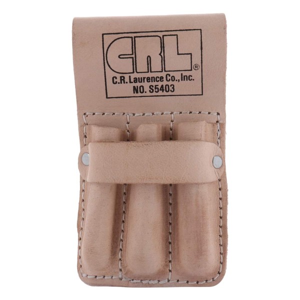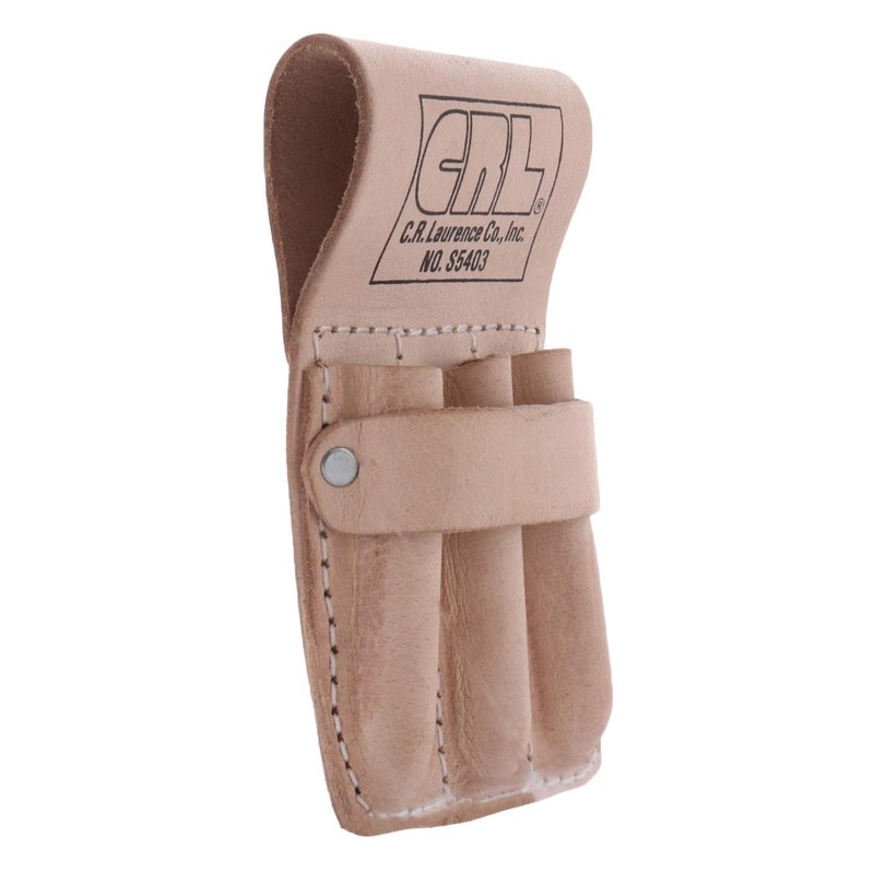 Strap for Tape Measure or Pliers. Made from Top Quality Leather. Handy Accessory for Everyday Work. This CRL Glass Cutter and Pencil Pouch is one of our most popular items. This leather pouch has three pockets to hold your pens, pencils or glass cutters. In addition, a leather strap has been added to hold a measuring tape or pliers. The large top belt loop will fit belts up to 1-1/2 inches (38 millimeters) wide.