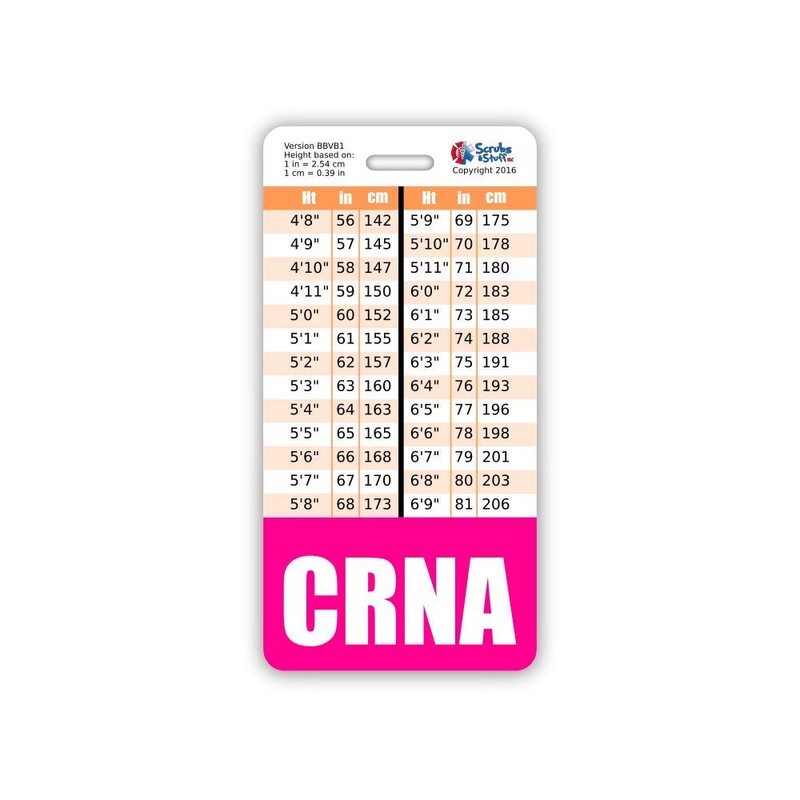 CRNA Badge Buddy Vertical w/Height & Weight Conversion Charts (Standard, Pink)