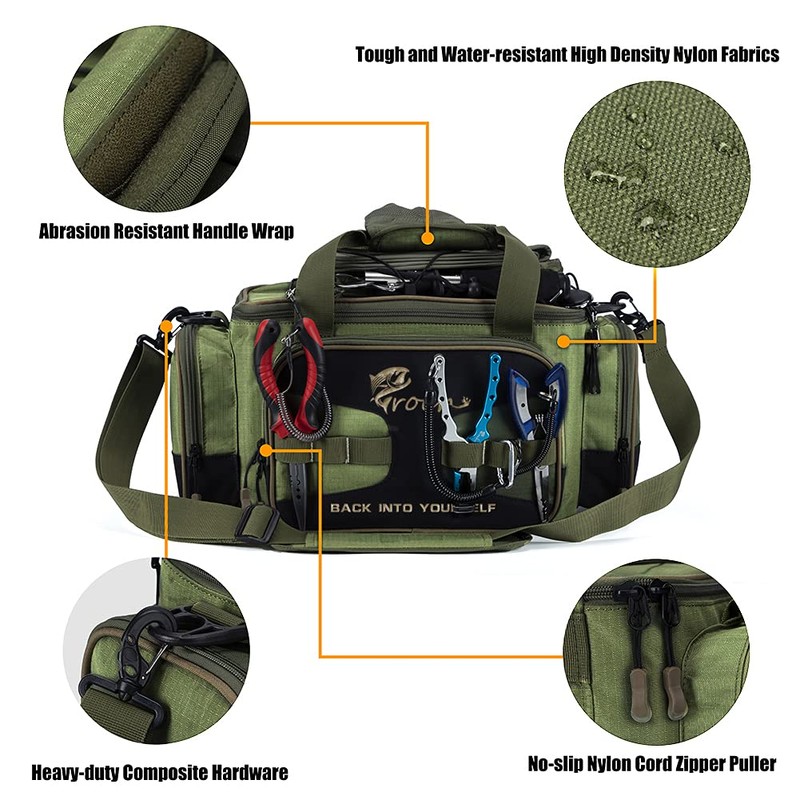 - Practical multifunctional fishing bag - with multiple side pockets and insert additional space, you can bring almost all fishing accessories and equipment.