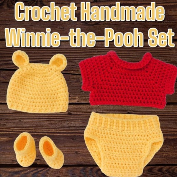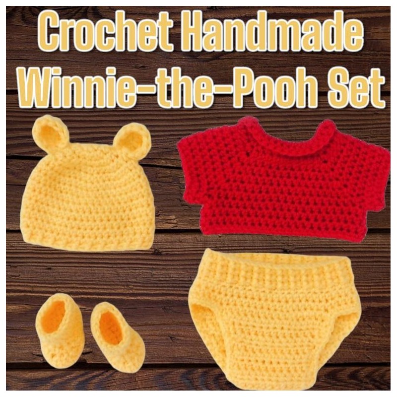 Crochet Hat Beanie with Accessories Set Pooh Inspired - Size: 0-3