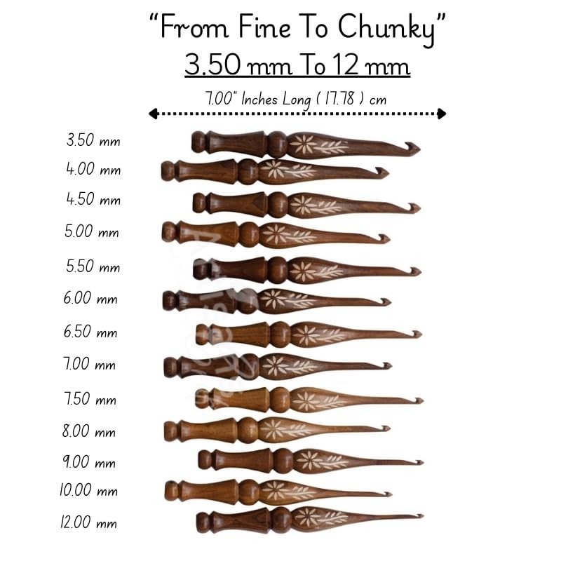 • Multiple Crochet Hook Sizes - 3.5mm, 4.0mm, 4.5mm, 5.0mm, 5.5mm, 6.0mm, 6.5mm, 7.0mm, 7.50mm, 8.00mm, 9.0mm, 10mm, and 12mm, available in a range of sizes to suit various crochet projects, 7-inch length for each crochet hook.