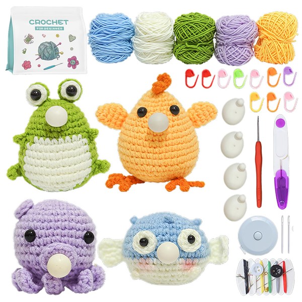 - EASY CROCHETING FOR BEGINNERS: Designed for beginners, our crochet starter kit provides step-by-step instructions and all the tools you need to get started. Young or old, anyone can learn this fun and creative craft. Start your own crochet animals: chick, goldfish, octopus and frog.