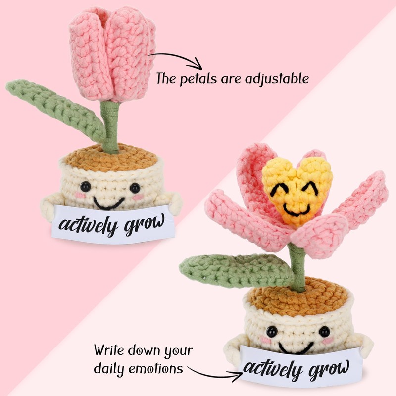 CrochetBox Complete Crochet Kit for Beginners, Tulips in Pots, Crochet Set, Include Video Tutorial, Instructions, Soft Yarn