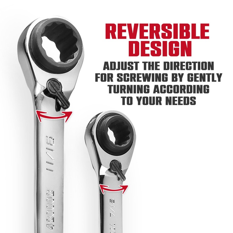 - Durable Construction – Crafted from heat-treated CR-V steel with a mirror-polished finish, this double ratcheting wrench set is built for strength, corrosion resistance, and easy maintenance.