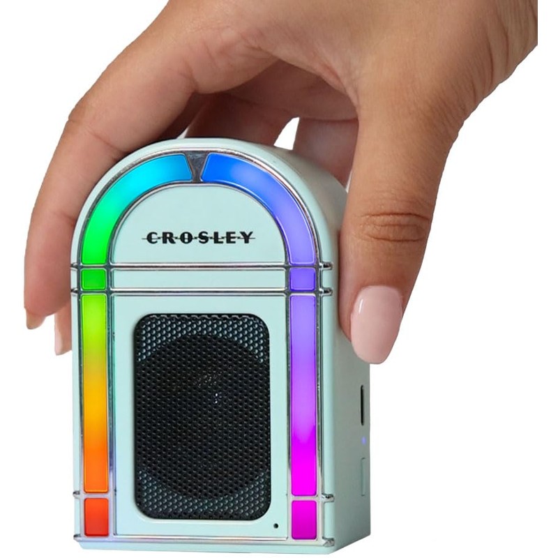 Crosley CR3046A-AB Mini Jukebox Portable Bluetooth Speaker with LED Lights and Microphone, Aqua Blue