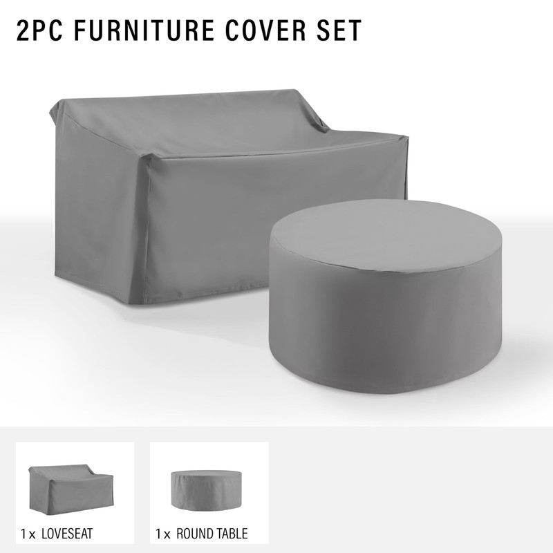 Crosley Furniture Patio Furniture Covers, Waterproof 2-Piece Cover Set for Round Outdoor Table and Loveseat, Gray