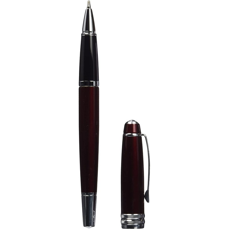 - This elegant rollerball pen has a high quality red lacquer finish and highly polished chrome fittings. The centre ring with deeply engraved accents completes the stylish look