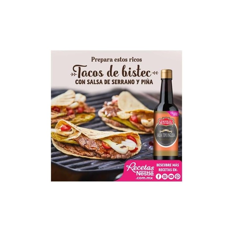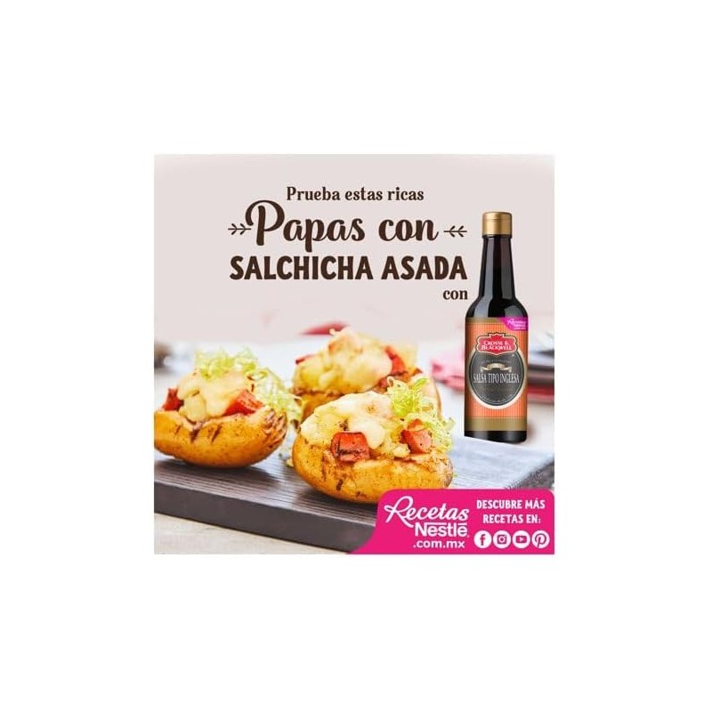 La Salsa Tipo Inglesa Crosse & Blackwell es el sazonador perfecto para todas tus proteínas, además de que te permite reinventar tus platillos de todos los días con su sabor único e insustituible. Tiene un sabor característico con una mezcla de sabores dulces, salados y picantes. Tiene una gran versatilidad de usos ya que es ideal para marinar, sazonar mientras preparas tu comida o añadir como topping. Con Salsa Tipo Inglesa Crosse & Blackwell puedes preparar una gran variedad de platillos, desde usarla para complementar tus asados, hasta para crear una vinagreta para tu ensalada. Agítese antes de usar. Listo para usar.