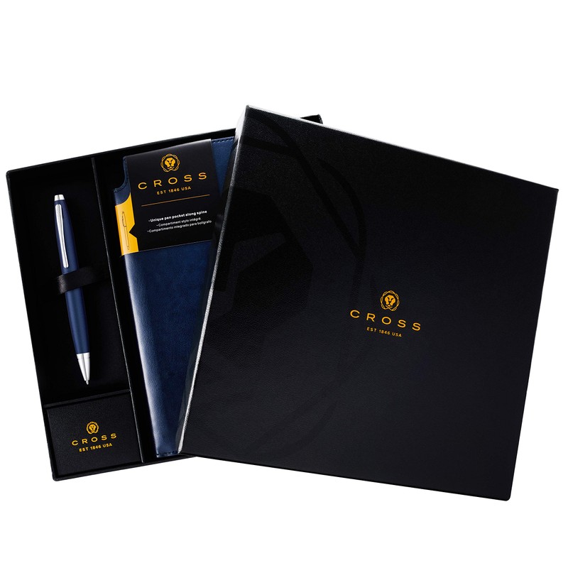 Cross Calais Matte Metallic Midnight Blue Ballpoint Pen with Medium Midnight Blue Journal