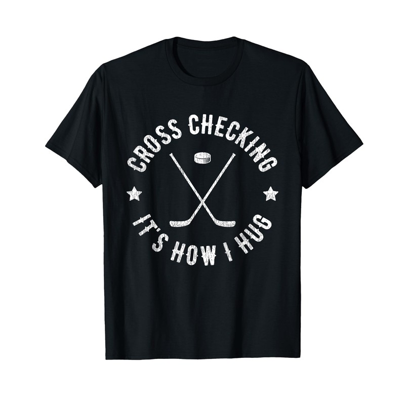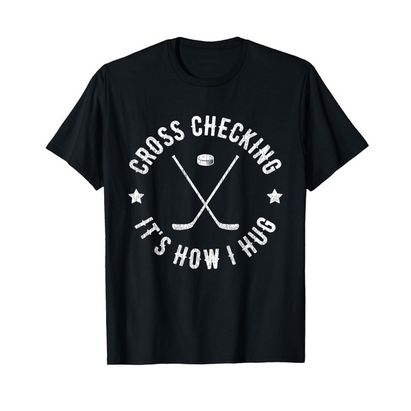• Cross Checking Its How I Hug are great gift ideas for any hockey player or fan! Vintage and distressed graphic tee.