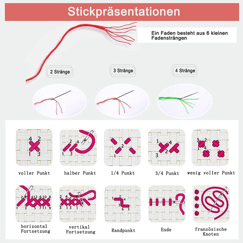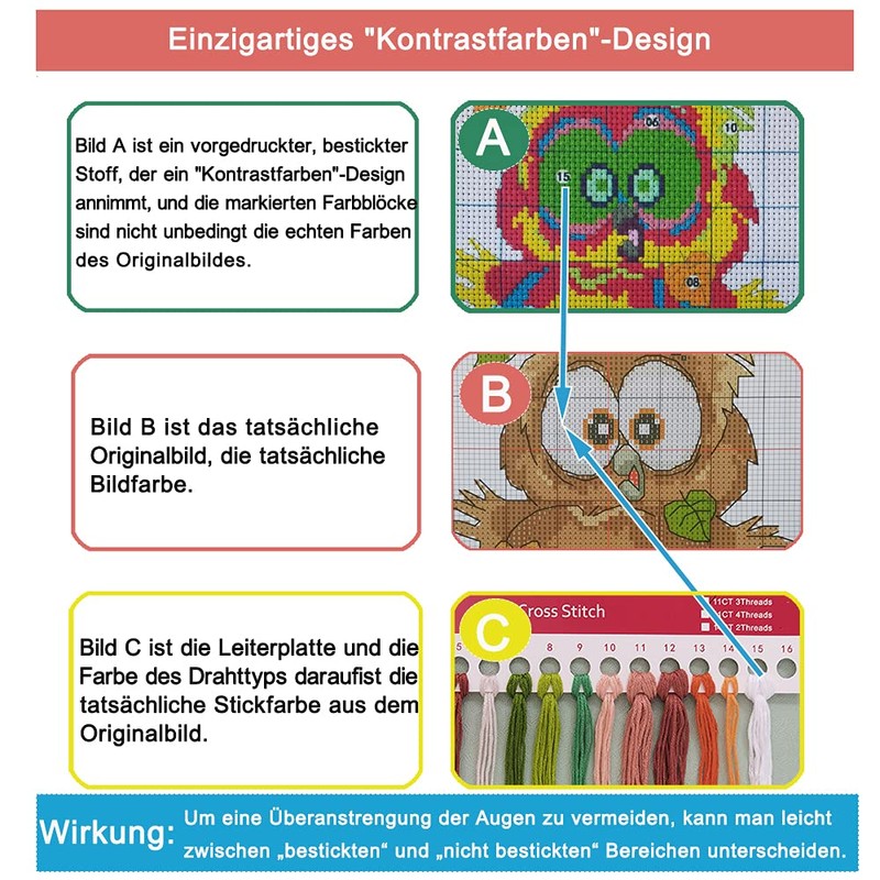- Accurate HD pre-print pattern and DMC colours: colour blocks on the print pattern do not correspond to the original colour of the floss. The symbols on the fabric have corresponding numbers. Simply read the symbols such as "x" ☆ "and choose the colour that corresponds to the numerical code so you can start sewing.