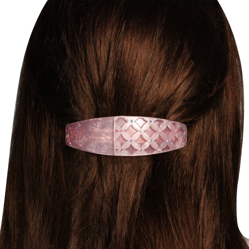 - Handmade Hair Barrette with rhinestones inset into the barrette so they do not fall off