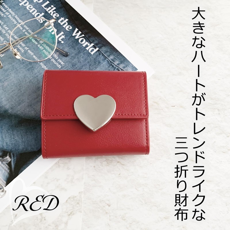 - A trendy trifold wallet with a cute big heart. Perfect for smaller bags and just the right size to fit in one hand