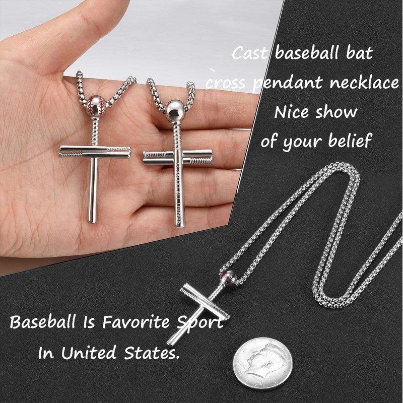 - ✞【HIGH QUALITY and Unique Design 】The cross necklace is made of high quality Stainless Steel which is hard to tarnish and rust. The baseball & baseball bat engraved red baseball lines in the stainless steel cross necklace is unique & perfect gift for Christian to pray who love sports.