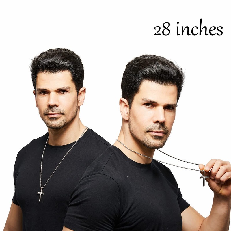 Cross Necklace for men by Pendant Baseball and Baseball Bat Sports Stainless Steel Cross Necklace Athletes men boys gift,Silver 28 inches