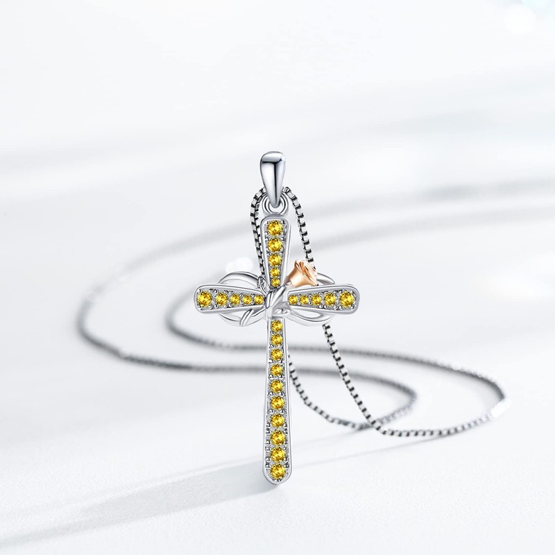Cross Necklace for Women Sterling Silver November Birthstone Necklace Citrine Pendant Necklace Rose Flower Infinity Cross Necklace Religious Jewellery Birthday Gifts for Girlfriend Wife