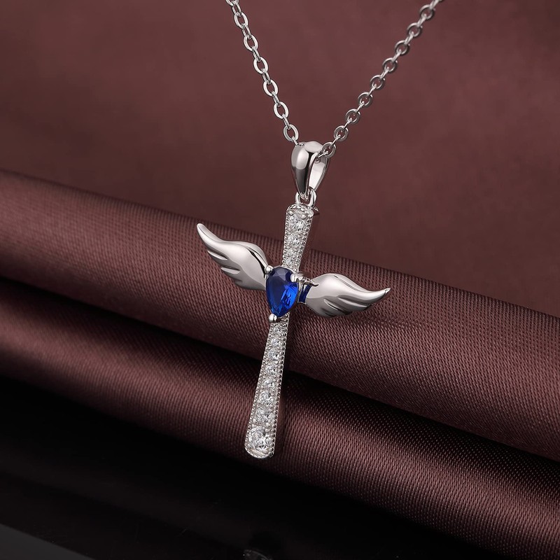Cross Necklace Womens Cross Necklace Angel Wings Cross Necklace Blue Sterling Silver Cross Necklace Cute Wings Cross Necklace Women Girls Cross Angel Wings Necklace Miaofu Cross Wings Necklace