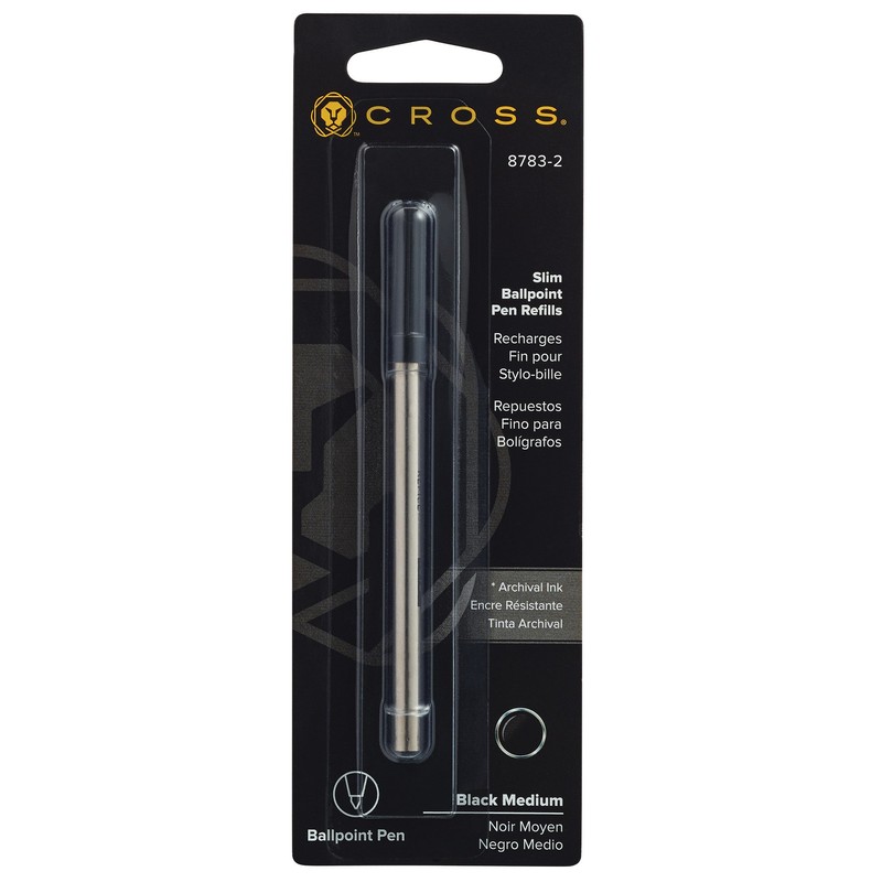 This slim ballpoint refill fits Cross click, classic Century, and Spire pens. It's suitable for general-purpose writing and is highly reliable and convenient for use on all paper.