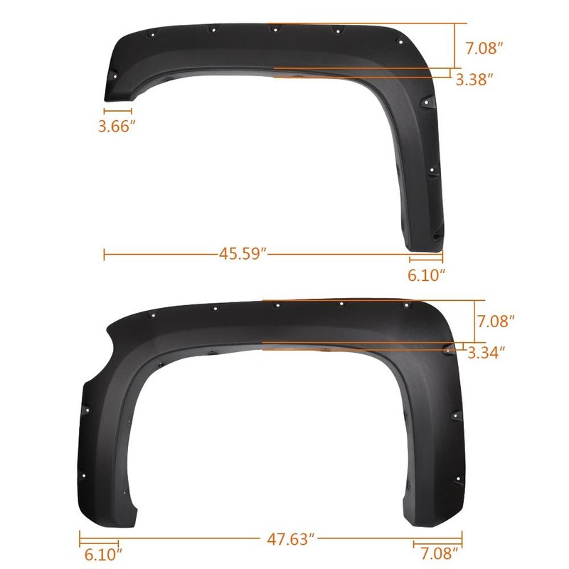 - PACKAGE INCLUDING: 4PCS Fender flares; Comes with bolts, nuts and all necessary mounting hardware for installation.