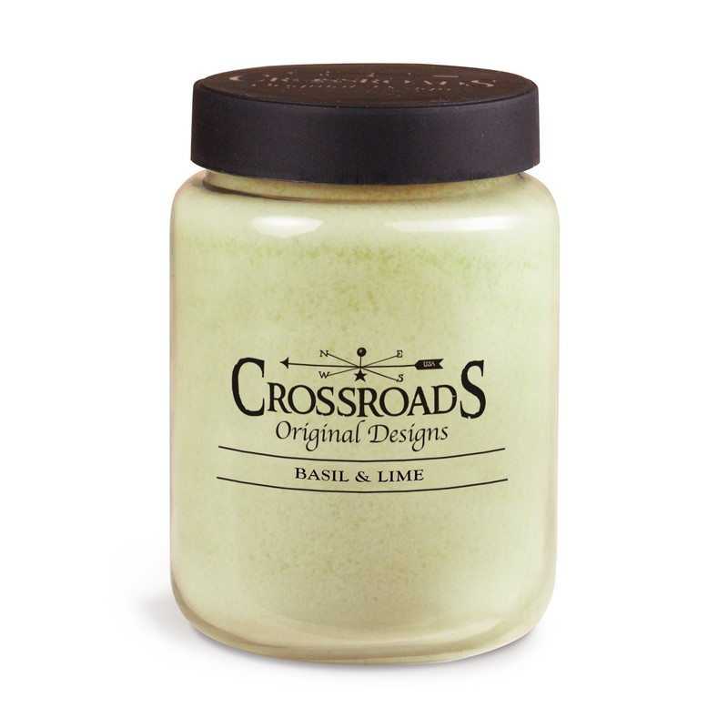 Basil & Lime - Lime, lemon, basil and sage. Light up your home with a high quality, clean burning candle from Crossroads Original Designs! Crossroads scented candles are made with a very clean burning, blended paraffin wax which allows for the maximum amount of fragrance. Proudly made in the USA.