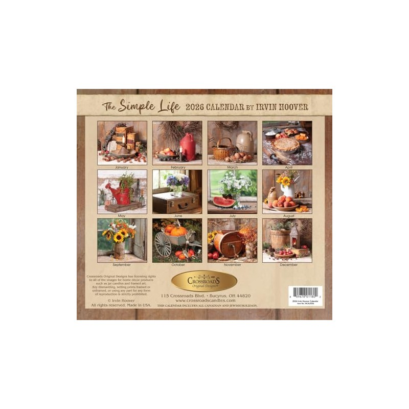 Crossroads Home 2026 "The Simple Life" Calendar by Irvin Hoover - Large Monthly Wall Calendar with Rustic Country Farmhouse Pictures