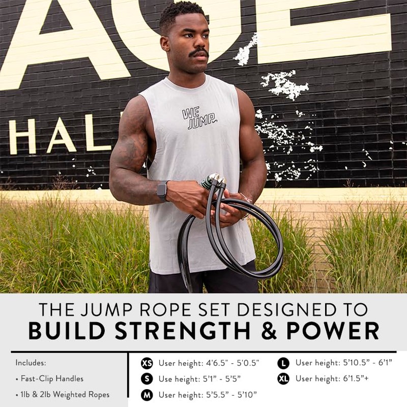 - First weighted jump rope system built to help you achieve your strength, endurance, and fitness goals: includes a 1LB and 2LB rope and power handles