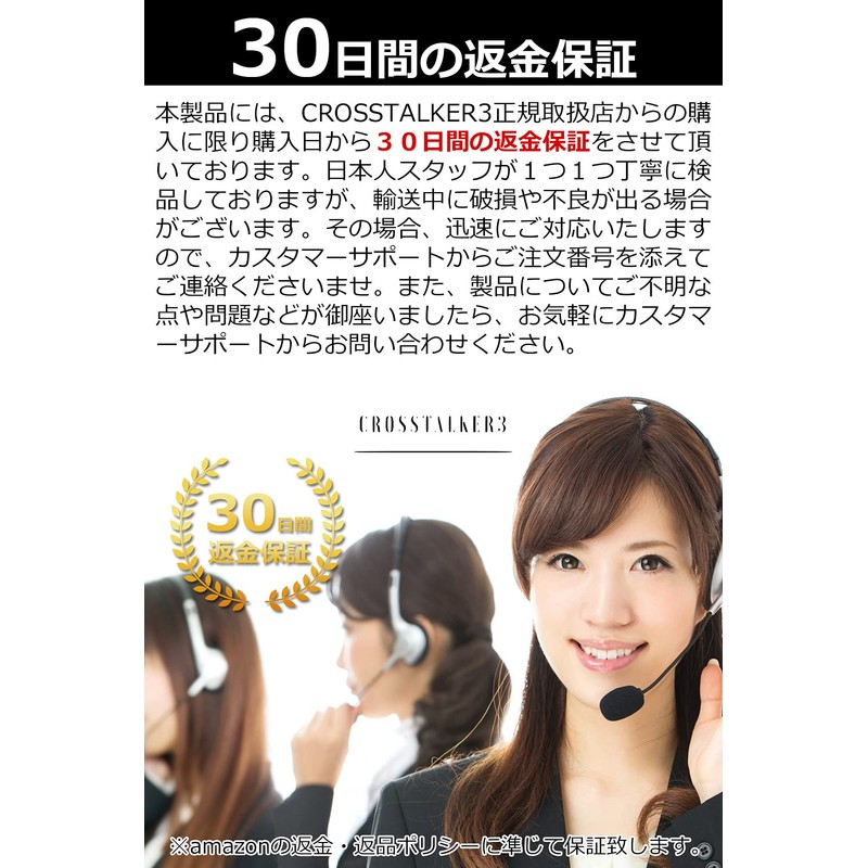 - 【 30日間のメーカー保証付き! 】 本製品には、「CROSSTALKER3」正規取扱店からの購入に限り購入日から30日間の返金保証をさせて頂いております。日本人スタッフが1つ1つ丁寧に検品しておりますが、輸送中に破損や不良が出る場合がございます。その場合、迅速にご対応いたしますので、カスタマーサポートからご注文番号を添えてご連絡くださいませ。また、製品についてご不明な点や問題などが御座いましたら、お気軽にカスタマーサポートからお問い合わせください。