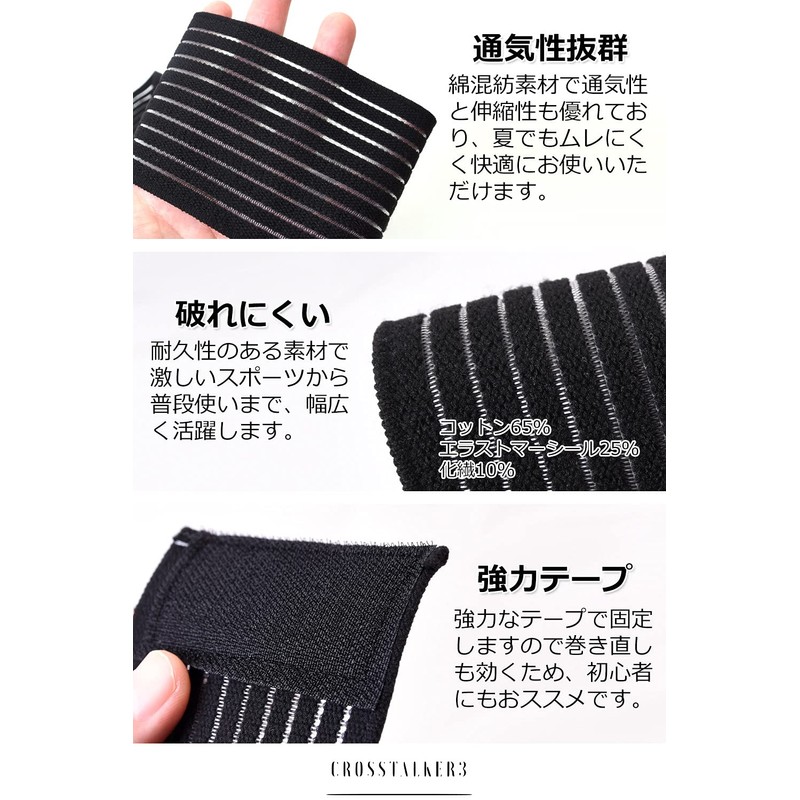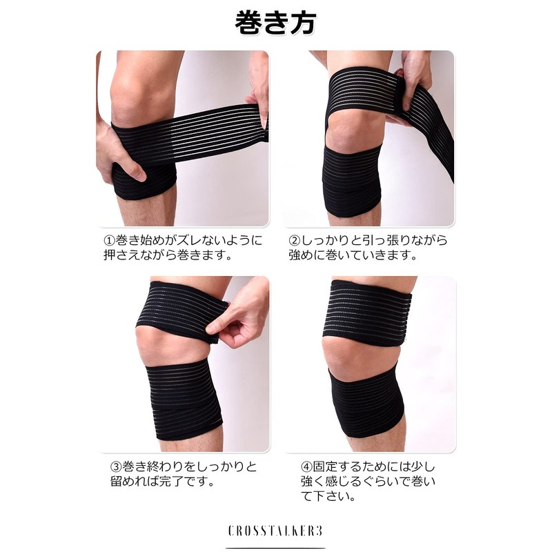 【CROSSTALKER3】 膝サポーター ふくらはぎ 【ブラック/男女兼用】 膝 サポーター 「 太もも 膝 手首 足首 にもお使いいただけます」 ひざサポーター (200㎝)