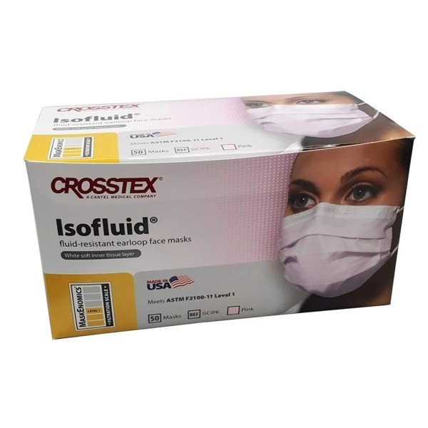 Crosstex *50-Pieces* Crosstex Isofluid Earloop Face Mask ASTM Level 1 Pink GCIPK
