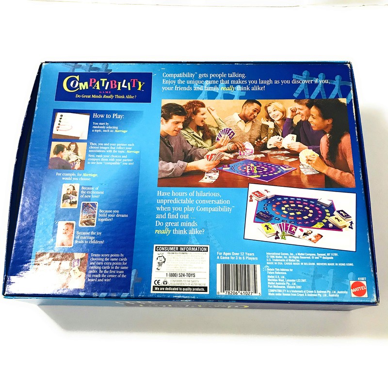How to Play: You start by randomly selecting one of the topics on a card: e.g. Disease, Pills, Pimple, Problem, or Marriage. Then you and your partner each choose images that reflect your associations with the topic. For the topic of Marriage, would you choose a picture of: (1) A Young Couple (Because of the excitement of new love), or (2)The Timber Frame of a new house being built (Because you build your dreams together),or (3) A Baby (Because the joy of marriage leads to children)? Teams score points by choosing the same cards and earn extra points for ranking cards in the same order. Be the first team to reach the center of the board and win!