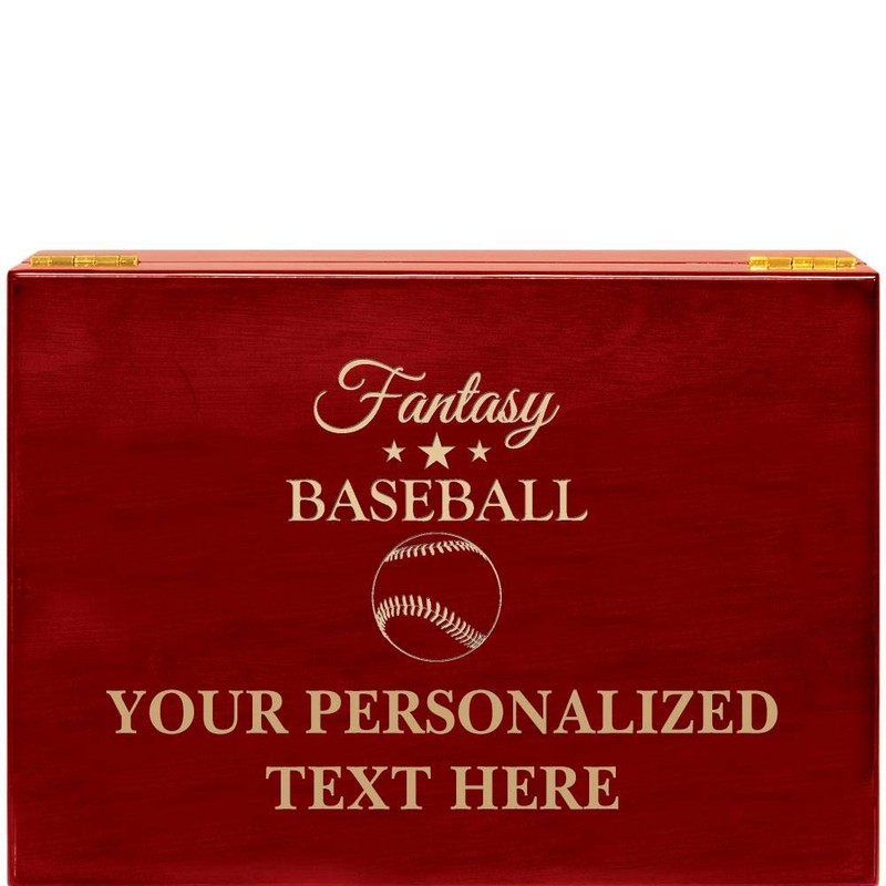 Crown Awards Fantasy Baseball Rosewood Humidor Gift, Customize with Your Own Text Engraving