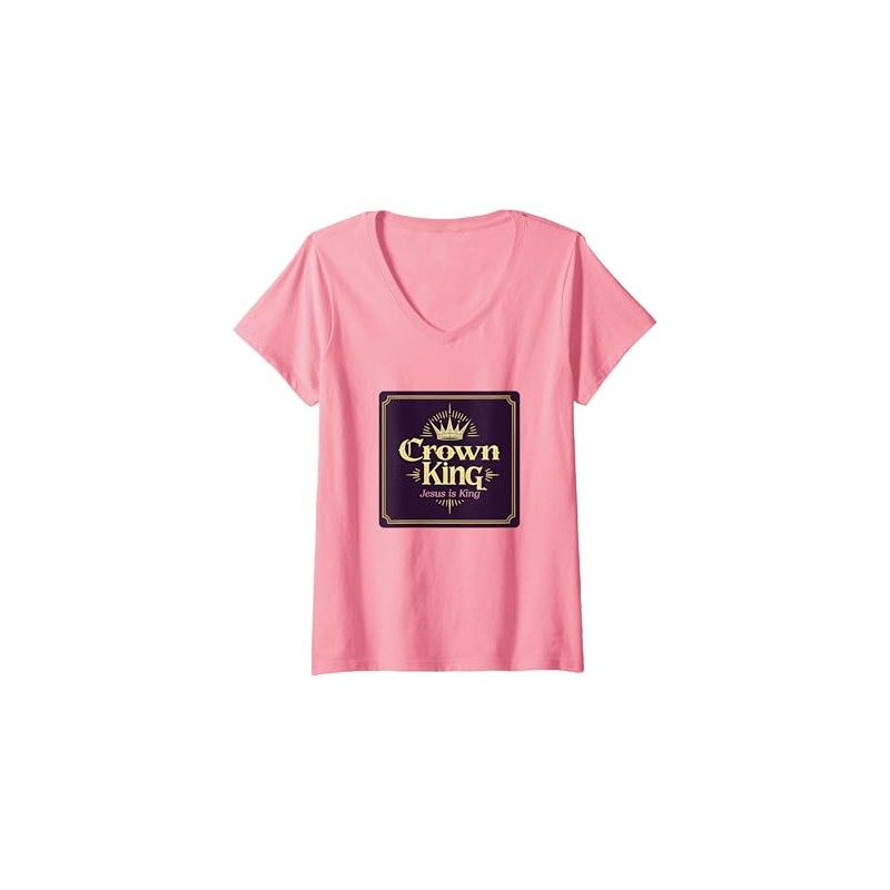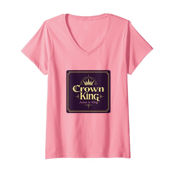 Crown King Jesus is King Regal Christian Faith V-Neck T-Shirt, Women, Pink