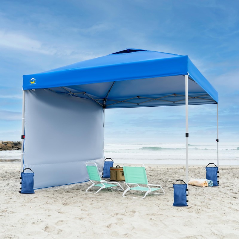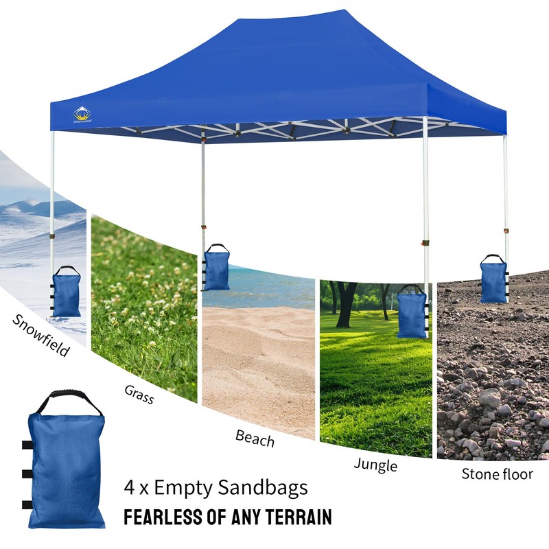 - EASY TO INSTALL - The three velcro straps securely attach the sandbags to the legs of the tent, adding weight to each leg to prevent it from being blown over and enabling it to withstand harsh weather conditions such as strong winds and heavy rain. The handle on top bags makes it easy carry.