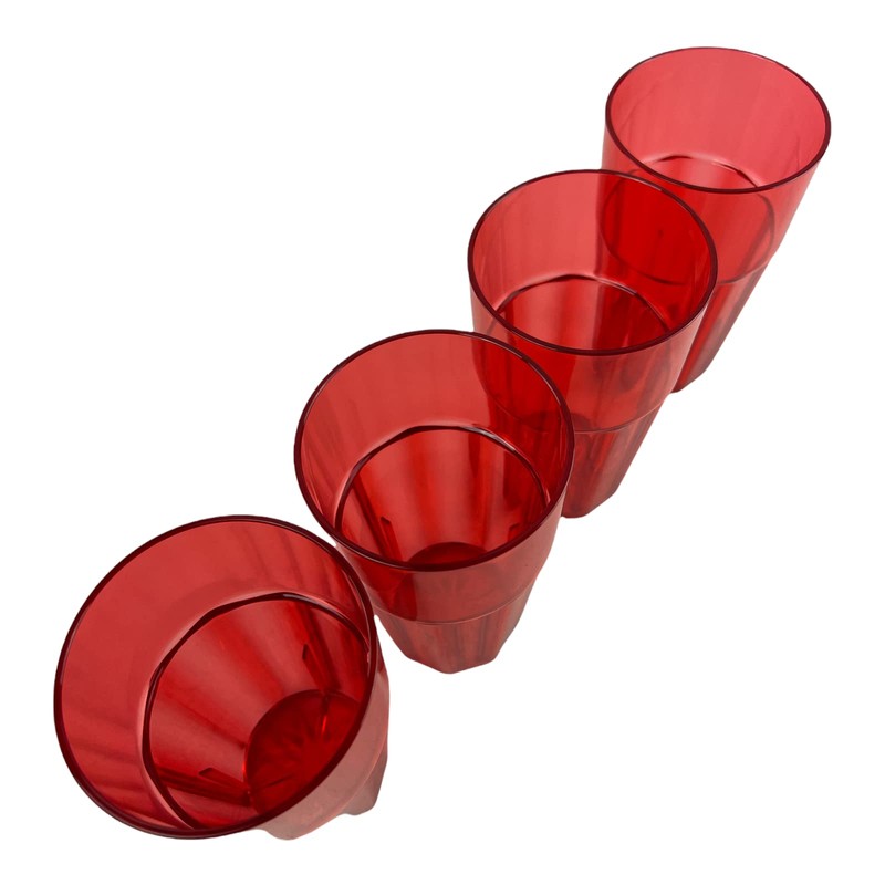 Crown Supplies Pack of 4 Large Red Rocks Tumblers Polycarbonate Glasses Unbreakable & Stackable