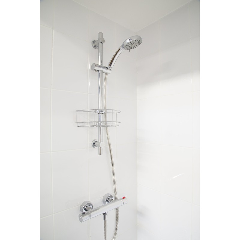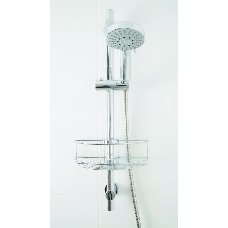 Croydex QM261041 Chrome Easy to Fit Riser Rail Basket Shower Storage, 5 Year Rust Free Guarantee, 8.5 x 26.5 x 13.5 cm