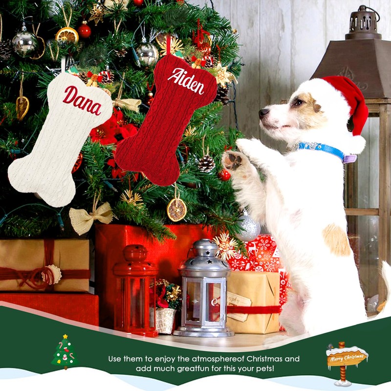 • 【Cute Bone Design】These personalized pet stockings are designed as shape of dog bone , a meaningful christmas souvenir for your pet dog.The pet christmas stockings looking very cute, suitable for decorating tree, fireplace, window, mantel, wall and so on,give your pet a good memory.