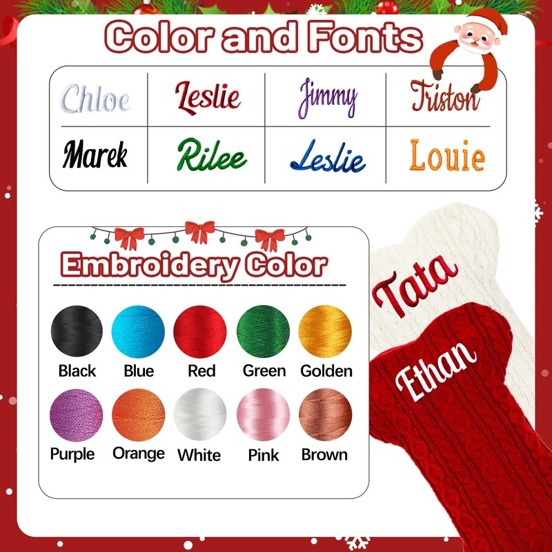 • 【Personalized Christmas Stocking】Every pets can enjoy personalized Xmas stockings. Personalized with names or any text to capture the warmth of Christmas.Multiple embroidery colors and fonts available.Please click the "Customize Now" button to personalize gift for your pets!