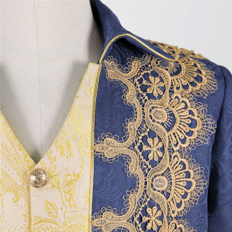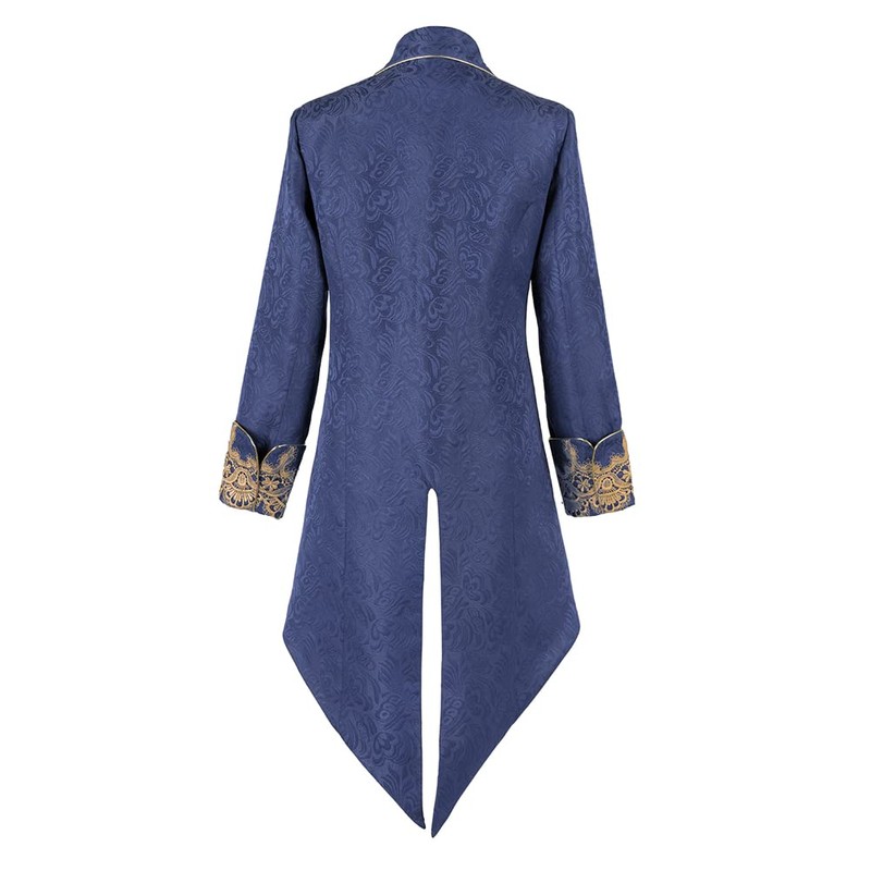 Crubelon Men Steampunk Medieval Jacket Gothic Victorian Frock Coat Uniform (Blue, XX-Large)