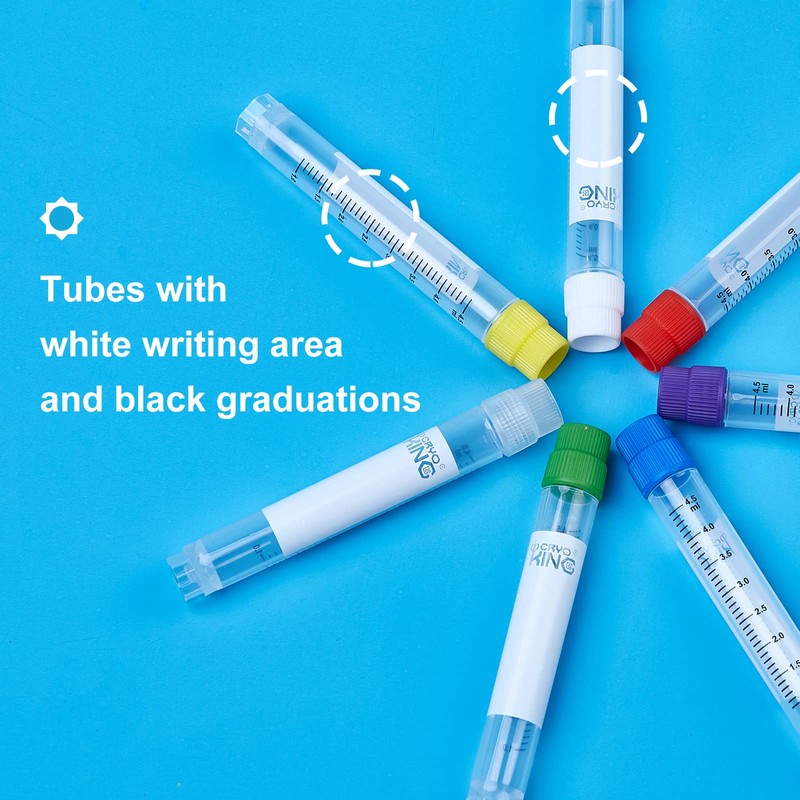 - [EASY TO USE] Tubes with writing area and graduations. Transparent wall permits easy viewing of tube contents