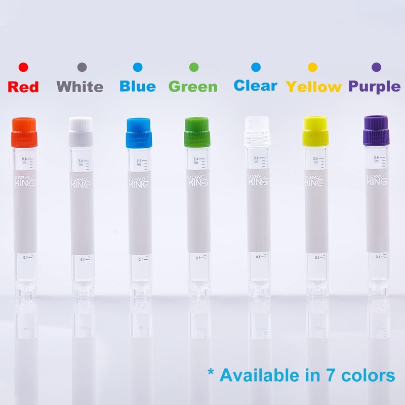 CryoKING Cryogenic Vials Tubes 5.0ml with Caps, PP, Plastic Cryovials for Sample Storage, Non-Barcoded External Thread, Self-Standing, Pack of 500