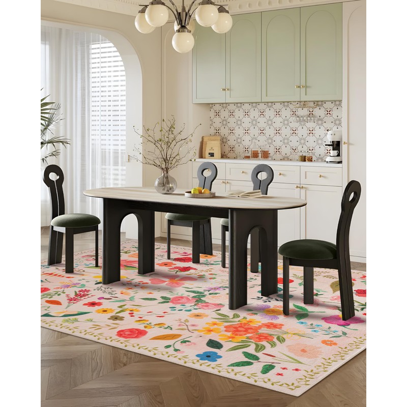 - 🌸【Boho Floral Charm】Featuring a vibrant boho floral pattern, this rug adds personality and warmth to any living room, bedroom, or dining space. A perfect blend of color and charm.