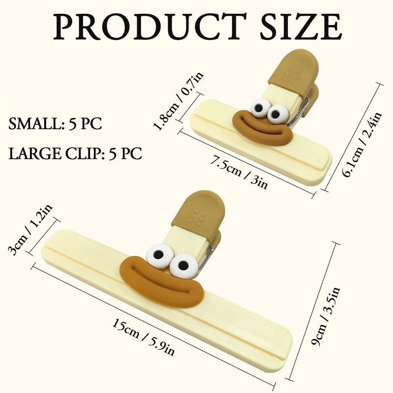 - 【Comprehensive Packing】You'll receive 10pcs chip bag clips in two sizes (5pcs of 3 x 2.5 Inch and 5pcs of 6 x 3.15 Inch). With creative design, they're easy to use and can seal different foods.